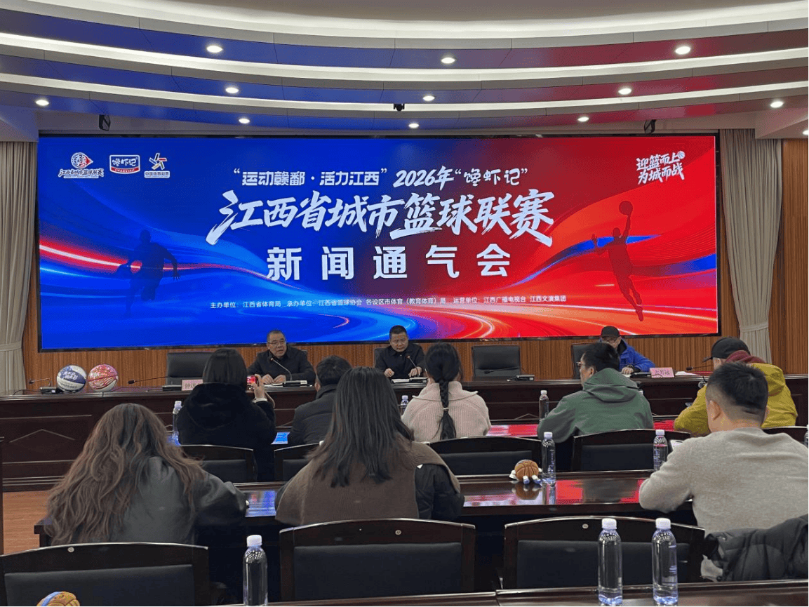 2026-01-11CBA,中国男子篮球职业联赛,CBA赛程,CBA直播,CBA比分,CBA投注/提供CBA最新赛程、实时比分、球队阵容、球员数据及盘口分析,服务中文球迷与篮球数据爱好者,让你全面掌握CBA最新动态。1月9日上午,2026年“馋虾记”江西省城市篮球联赛(简称“赣BA”)新闻通气会在南昌举行。江西省体育局群众体育处处长刘钢,江西省篮球协会主席古芳远,以及省市体育局、省市篮协相关负责人、媒体记者代表齐聚一堂,共同揭晓这项承载江西篮球情怀、融合多元价值的省级自主IP赛事的核心亮点与筹备进展。