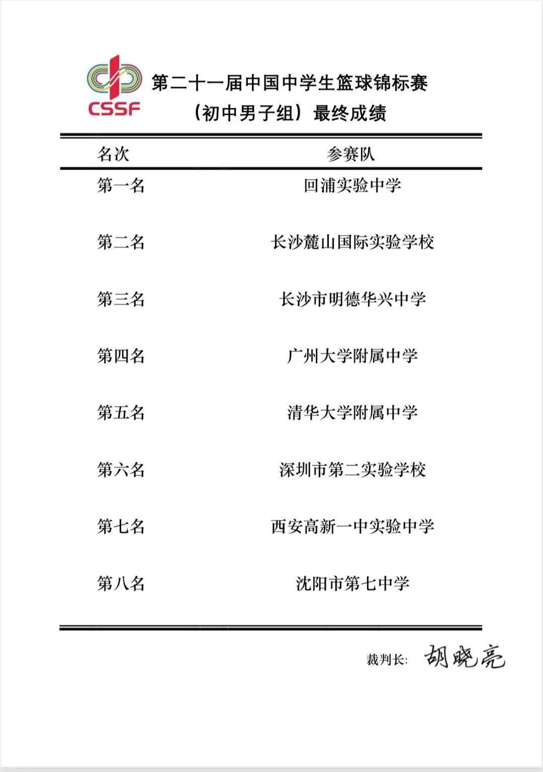 04回浦实验中学在本次赛事中七战全胜,交叉赛先后击败西安高新一中实验学校和明德华兴中学。