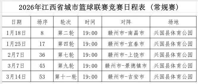 2026-01-21CBA,中国男子篮球职业联赛,CBA赛程,CBA直播,CBA比分,CBA投注/提供CBA最新赛程、实时比分、球队阵容、球员数据及盘口分析,服务中文球迷与篮球数据爱好者,让你全面掌握CBA最新动态。当红色热土遇上篮球激情,当城市荣耀碰撞赛场锋芒!2026 年第一届江西省城市超级男子篮球联赛(第二轮)即将重磅开赛:两大省内篮坛劲旅,用热血与汗水诠释 “篮上争锋,红动赣鄱” 的赛事初心!