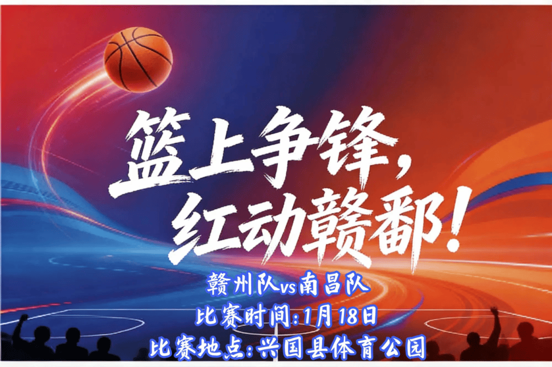 当哨声响起,当篮球腾空,这不仅是一场比赛,更是一次城市精神的集结!1月18日,兴国县体育公园,让我们一起奔赴现场,为赣州队加油助威,见证每一次进攻的犀利、每一次防守的坚韧、每一个进球的狂欢!