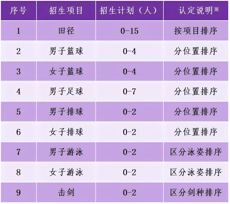 高水平运动队招生计划严格按照教育部的有关规定执行,各项目计划录取人数为: