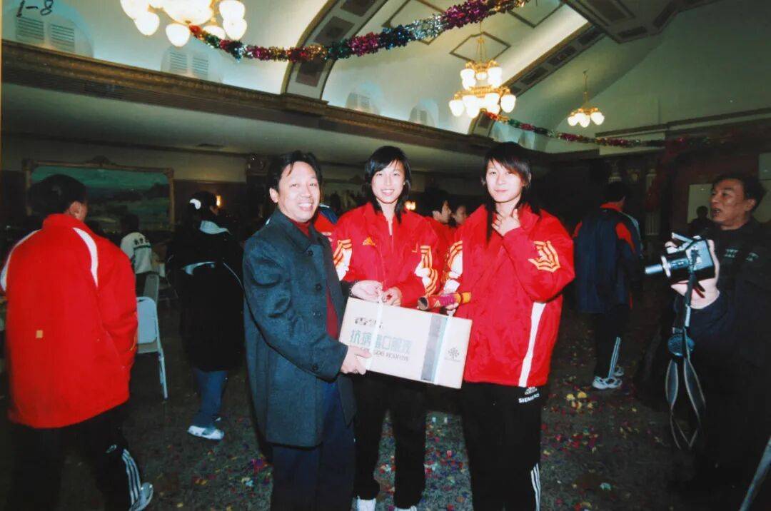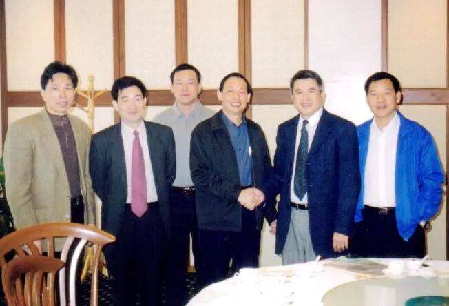 2002年1月6日晚上在环市东友谊商店六层的潮豪、五哥拍摄的广州市足协与香雪制药企业签约的合影(左——右:孔茂盛、陈万鹏、杨旭、欧迅强、王永辉、谢志光)