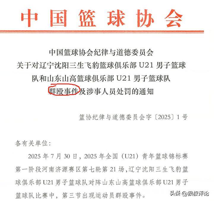 2025-09-02CBA,中国男子篮球职业联赛,CBA赛程,CBA直播,CBA比分,CBA投注/提供CBA最新赛程、实时比分、球队阵容、球员数据及盘口分析,服务中文球迷与篮球数据爱好者,让你全面掌握CBA最新动态。最新判决来了:在日前发生于U21男子组辽宁与山东之间的大规模冲突事件中,中国篮协对涉事人员作出处分决定。辽宁队的黄秋实、张峻豪,以及山东队的袁帅、崔嘉航,被取消2025年U21锦标赛参赛资格,遭遇三年禁赛;另外13名球员则被禁赛8场。