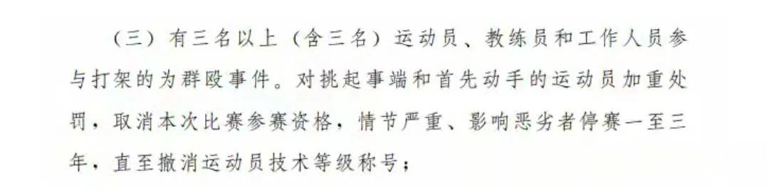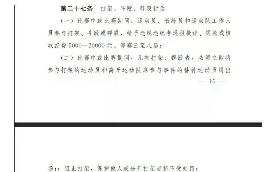 在该规定的第27条第一款中,参与打架斗殴或群殴的行为,将面临5000元至2万元的罚款,并停赛3至8场。更为关键的是,规定的三款强调“3名以上球员或教练员参与打架”时属于群殴事件,对于挑起事端和直接先动手的当事人,处罚将更为严厉,甚至可能造成1至3年的停赛,甚至撤销运动员的技术等级称号。关于“何谓群殴及其严重性影响”的界定,条文给出较为详尽的解释。结合当时的情形,黄秋实与袁帅的初期冲突已然升级,张俊豪上前添柴,崔佳航再度出手,矛盾迅速扩散,最终让事态变得更加复杂。