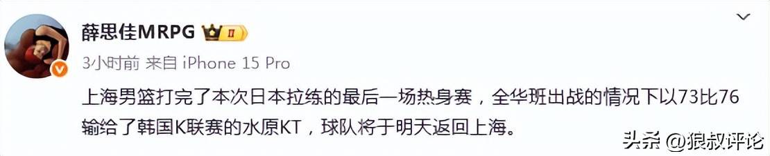 2025-09-18CBA,中国男子篮球职业联赛,CBA赛程,CBA直播,CBA比分,CBA投注/提供CBA最新赛程、实时比分、球队阵容、球员数据及盘口分析,服务中文球迷与篮球数据爱好者,让你全面掌握CBA最新动态。9月15日最新消息,上海男篮在日本进行的海外拉练迎来收官战。面对韩国K联赛强队水原KT,以全华班阵容出战的上海队经过激烈较量,最终以73-76三分之差遗憾落败。据知名篮球记者薛思佳透露,球队将于9月16日启程返回上海,结束此次海外集训。