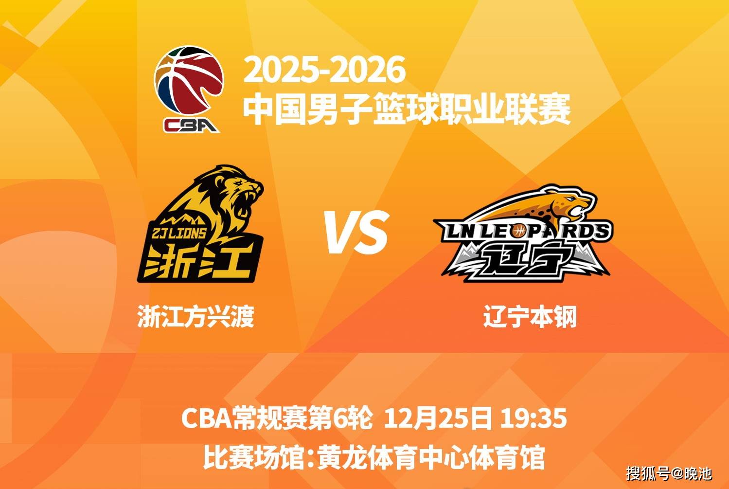 北京时间12月25日晚(今晚)19时35分,2025-2026赛季CBA常规赛第6轮的一场焦点对决在位于杭州的黄龙体育中心体育馆上演,老牌球队辽篮远赴客场,对阵卫冕冠军浙江广厦(浙江方兴渡)。