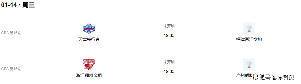 CBA中文网——中国男子篮球职业联赛赛程比分+球队数据+盘口分析今晚赛事:1月14日晚19点35CBA焦点战浙江对战广州央视不直播