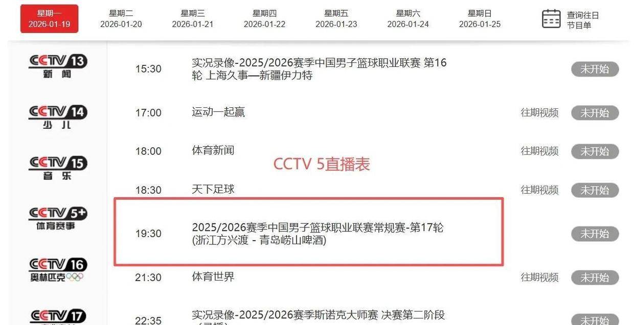 根据CCTV5直播表的安排,今晚将会选择广厦男篮主场迎战青岛男篮这场比赛全程直播。这场焦点之战将于19点35分准时开打。