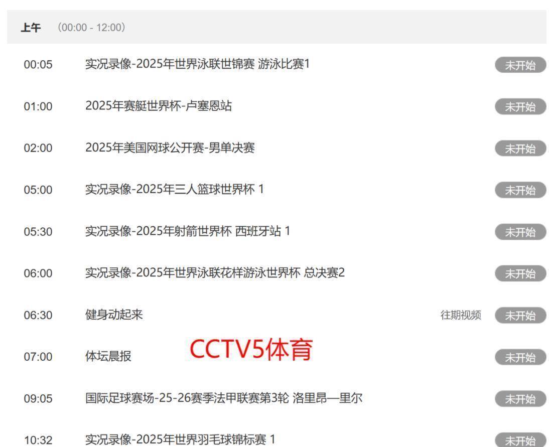今晚CCTV5 倒是有个WTT欧洲大满贯女单比赛的实况录像,在晚上20:15播出。真正的篮球迷可能得等到明天了,央视从9月9日开始才会直播WTT澳门冠军赛乒乓球比赛。